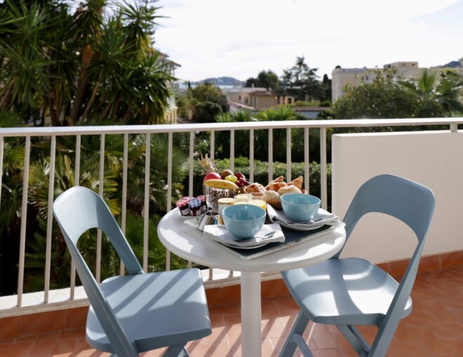 Notre Suite vue mer vous accueille pour un séjour en toute quiétude au centre de Beaulieu-sur-mer avec une vue imprenable sur Saint Jean-Cap-Ferrat.
